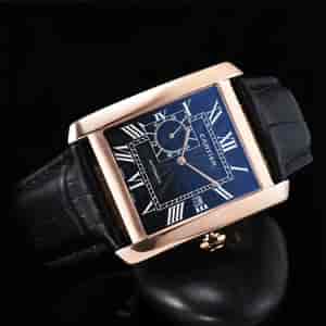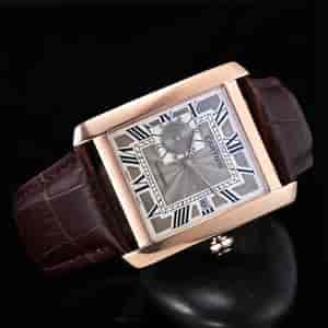 材质:全自动机械.牛皮 尺寸:宽40mm 厚12mm 描述:CARTIER卡地亚 尊贵大气卓绝奢华睿智臻贵精品3针半小秒配备日期(顶级品质)316L精钢表壳(完美打造)耐磨矿质水晶玻璃 (经久耐用)进口牛皮表带,原装经典表扣。