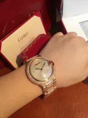 .蓝气球.满天星 材质:瑞士石英.蓝宝石镜面 尺寸:宽38mm 描述:奢华!满天星!强力推荐卡地亚,纳米电渡玫金,镶钻不掉钻,全316l精钢,三度防水,合适女生所有手型!