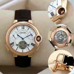 材质:瑞士磷片机械.牛皮 尺寸:宽45mm 描述:全新系列陀飞轮腕表,如气球般轻盈,如其守护的蓝宝石般湛蓝,