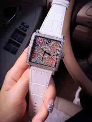 材质:瑞士自动金机械.牛皮 尺寸:36.5mmx36.5mmx10.2mm 描述:FranckMuller:法兰克穆勒腕表是世界最知名的高级腕表品牌之一,也是无数男女明星的热捧之物。正方形款上手更潮,表壳·后盖·桥形设计,贴手型,德国进口小牛皮,316精钢。表带有13种颜色提供选择。