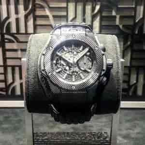 型号:B3293235990011 品牌:恒宝.BIG BANG系列 材质:多功能石英.真皮 尺寸:宽48mm 描述:HUBLOT 入冬暖手款,遮不住的时尚! 恒宝 宇舶表塔铆钉 其滚花表壳由千余枚金字塔柳钉装饰,硬朗风格延续至按钮、表冠以及读数。该腕表精致完美的真皮表带上亦搭配有可拆卸铆钉手饰,于腕间打造出摇滚巨星风范。造就一款顶级材质的融合计时。何不再融入一些“全黑”的摇滚音符?如同宇舶表“不可见之可见”哲学理念,全新Big Bang腕表·Depeche Mode特别版限量发布!