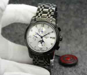 材质:多功能自动机械.316精钢 尺寸:宽41mm 厚12mm 描述:浪琴新款男士机械腕表精钢抛光表壳,内置优质全自动机械机芯,走时准时,质量稳定!搭配精钢表带表扣!商务休闲两宜!