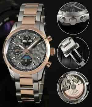 尺寸:宽44mm 厚12mm 材质:瑞士7751自动机芯 描述:狠货浪琴康伯系列2015力作,别看广告,看实物,316精锻造,搭载7751,真8针月相机械机芯,蓝宝石玻璃镜面,独特视角,高端品质贴有AAA标签,香港正货,请认准订购