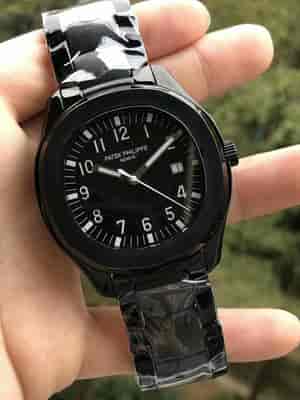 .手雷 材质:雕花自动机械.316精钢 尺寸:宽40mm 描述:百达翡丽 Aquanaut超大款式,日历显示大表盘中心大秒针,黑色浮雕表盘,覆荧光涂层立体字块,黑色热带复合材质表带,折叠式表扣,旋入式表冠,316精钢材质。