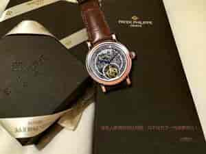 材质:全镂穿雕花自动机械.牛皮 尺寸:宽44mm 描述:表王之王Patek Philippe 百达翡丽44mm新品系列亮相2016年巴塞尔国际钟表珠宝展。全镂空陀飞轮腕表进一步丰富了品牌的现产腕表系列。此次展出的作品包括新开发的这款雕花陀飞轮腕表,双层表圈设计更显优雅富有内涵,钢蓝大秒针设计,原装折叠表扣,重新演绎经典,必将令高级制表工艺的收藏家与爱好者再度欢呼雀跃。没有人能拥有百达翡丽,只不过为下一代保管而已!收起