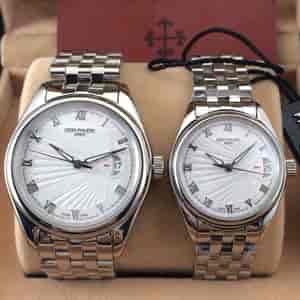 (情侣表) 材质:瑞士ETA2824自动机械 尺寸:男40MM 女32MM 厚10MM 描述: 百达情侣对表新款罗马面强势来袭2824机芯,双卜兰宝玻璃,透底设计,整机316L精钢打造,质量有保证!超强剑形夜光指针,原装折叠按扣,独特的放射纹理镜面