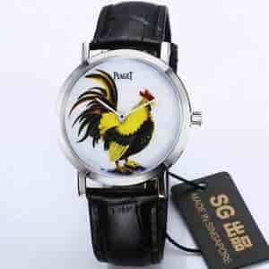.Piaget Altiplano系列 材质:进口9015自动机械.蓝宝石 尺寸:宽40mm 厚7.5mm 描述:金鸡报喜金鸡报晓金鸡送福 伯爵 Piaget Altiplano系列为庆祝中国农历鸡年生肖腕表:“飒爽金鸡演绎轩昂风范!”此款极具收藏价值的腕表全球限量38枚,宛若一曲为卓越技艺奏响的悠扬赞歌,完美诠释了Piaget伯爵多年以来对非凡工艺的传承与坚持! 采用进口9015机芯零返修,专柜同款,一比一复刻! 戴上此表年必行大运收起