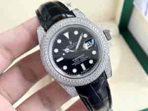 说明:一比一复刻 V3版,升级(鳄鱼皮,扣子全满钻)新品,劳力士顶级玩物毒货,不喜欢撞款街表水鬼的你,他绝对是你的知音。用劳力士最经典的潜航系列水鬼作为原型,表壳表扣均采用顶级904钢,经过圈口的二次改装,然后镶嵌顶级天然皓石,大闪亮,难度极高,目前同种材质最闪工艺。超强夜光字面,蓝宝石镜面。皮带专门定制模具做弯头粒,完全贴合表壳。扣子内2cm灵活调节扣,轻松调节大小。专业成就未来,一劳