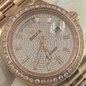 .满天星 材质:瑞士Eta3255自动机械.蓝宝石 尺寸:宽41mm 厚11mm 描述:一表一卡式,为防水而生2017最新款式首发劳力士全玫瑰金镶石满天星条钻字面出货,尽显土豪本色、搭载原装进口全自动机械机芯,3255机芯 ,性能稳定 零返俢 316L精钢,最高版本做工。