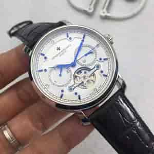 材质:多功能自动机械.牛皮 尺寸:宽43mm 描述:江诗丹顿(高雅品位 睿智风范) 类型:精品男士腕表 表带:真牛皮表带 材料:矿物质超强镜面 经典回放 尊贵高雅 雅绅风度 睿智尊享